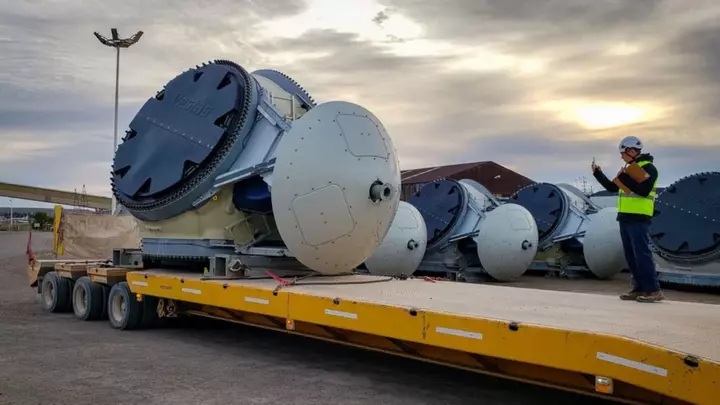 El cronograma se desarrolla según lo planificado con el despacho de las palas y nacelles (góndolas) de dichos aerogeneradores, siendo tres componentes por semana.
