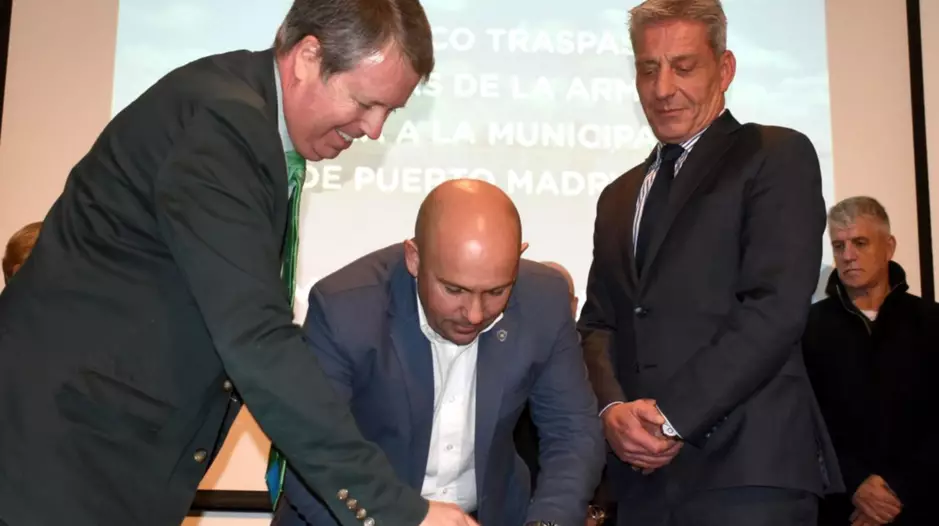 Durante el acto oficial, que se realizó en el Ecocentro “Pampa Azul” de la localidad portuaria, el escribano general del Gobierno, Marcelo Lizurume, realizó la lectura de la autorización a través de la cual el Estado Nacional transfiere a la Municipalidad de Puerto Madryn una fracción del terreno que posee la Armada Argentina en dicha ciudad.
