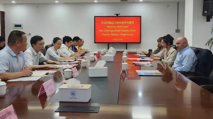 El intendente de Puerto Madryn, Gustavo Sastre, participó de una importante reunión con el Bureau de Pesca y Agricultura de Fuzhou, en China. Además, estaban presentes representantes de las dos empresas pesqueras más importantes de la región: Fujian Zhengguan Fishery Development Co y Fuzhou Honglong Ocean Fishing Co.