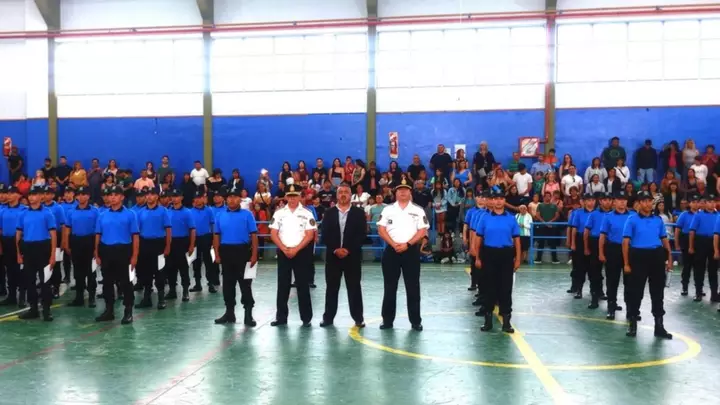 Ayer en la escuela Nº 710 se llevó a cabo el acto de colación de 53 nuevos agentes de la Policía del Chubut recibidos en el Instituto Superior de Formación Profesional Nº 811 Anexo Puerto Madryn