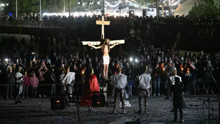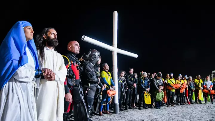 "Miles de vecinos y turistas disfrutaron en la noche del viernes de la vigésima edición del Vía Crucis Submarino, un evento reconocido a nivel mundial que desde el 2014 además cuenta con la bendición del Papa Francisco", expresó en sus redes sociales el intendente de Puerto Madryn, Gustavo Sastre, tras un nuevo vía crucis.