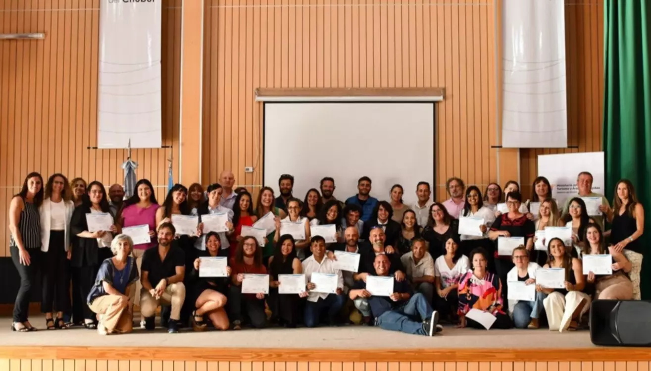 Concluida la capacitación, que comprendió la realización de instancias prácticas en territorio, un total de 46 egresados recibieron sus respectivos diplomas en un acto organizado en forma conjunta por la Universidad del Chubut y el Ministerio de Turismo y Áreas Protegidas de la provincia.