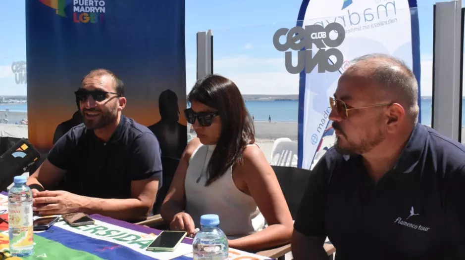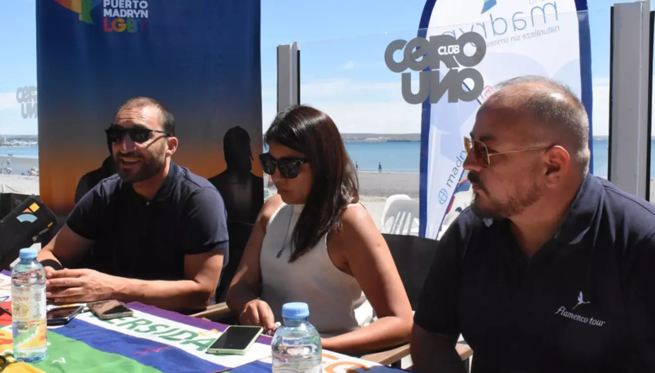 En el lanzamiento estuvieron presentes Cecilia Pavia, secretaria de Turismo; Andrés Calabró subsecretario de Deportes y Matías García, referente en Chubut de la Cámara de Comercio LGBT Argentina (CCGLAR).