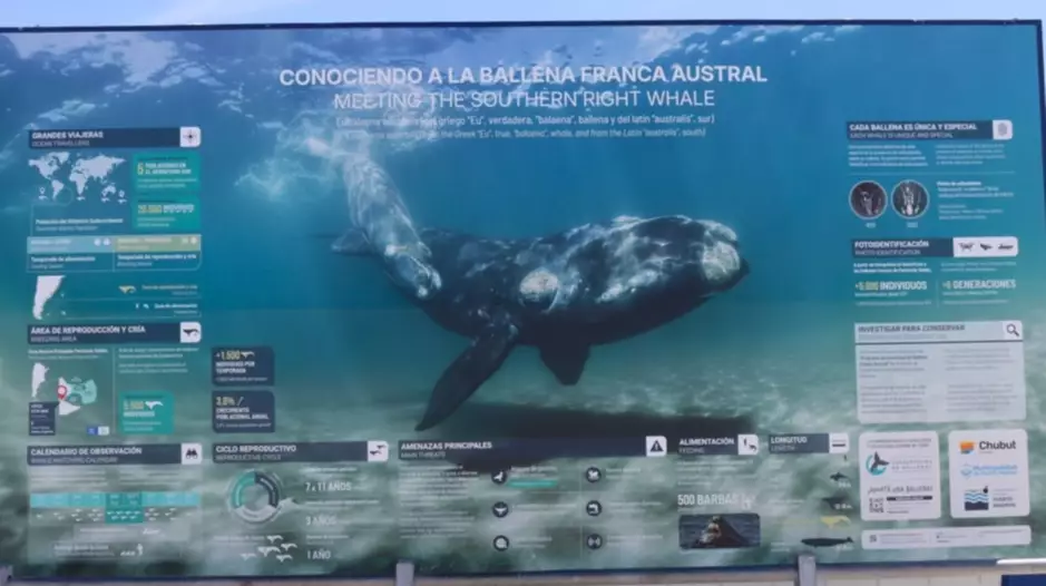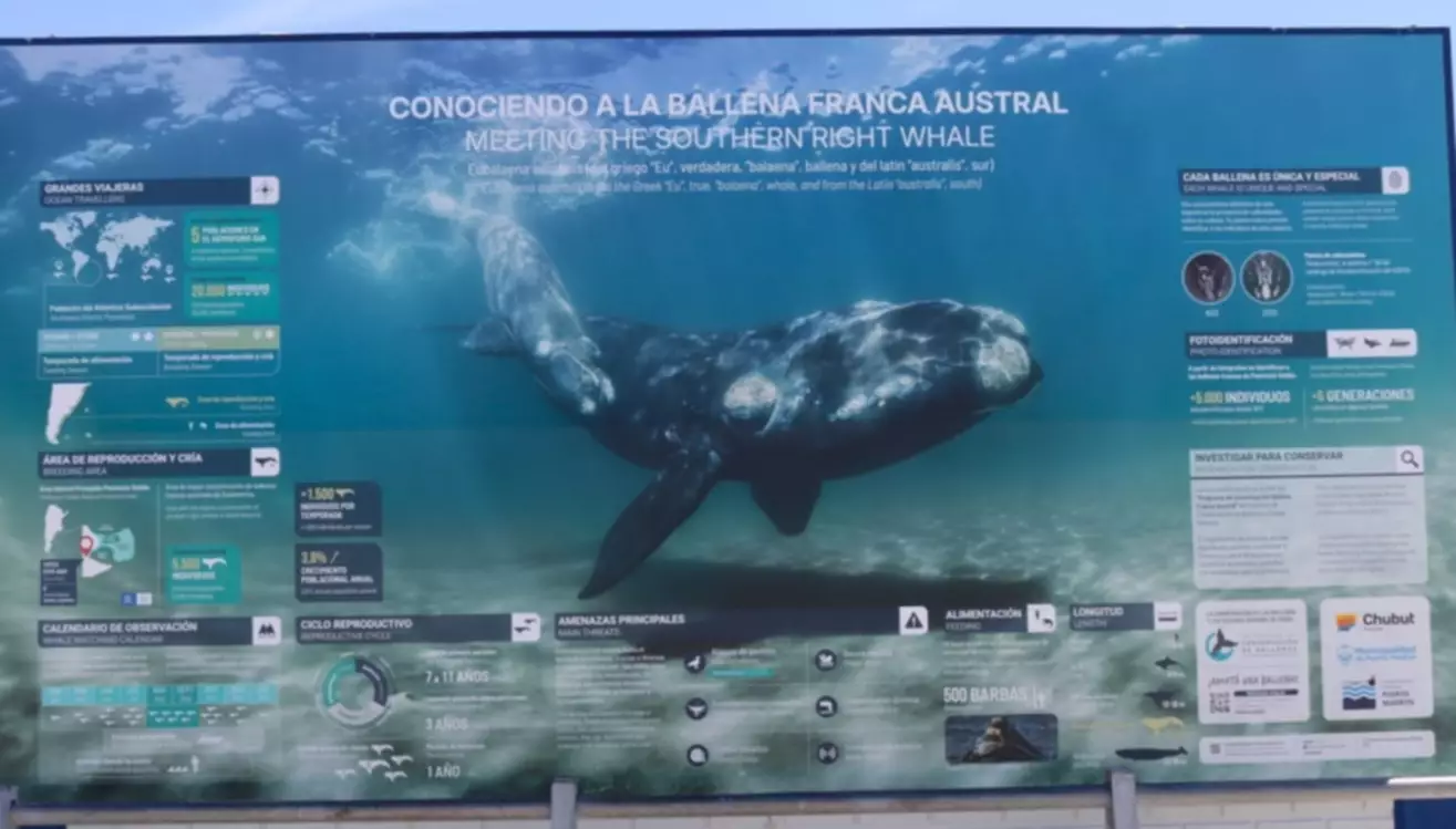 “Agradecemos esta oportunidad que nos brinda la APPM para seguir acercando a los visitantes a las ballenas francas australes. La información presentada en la gigantografía es el resultado de más de cinco décadas de investigación sobre esta especie tan emblemática para la provincia de Chubut. Brindar información a los visitantes es fundamental para fomentar su participación activa en su protección y la de su hábitat”, expresó Roxana Schteinbarg, co fundadora del ICB.