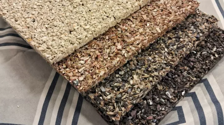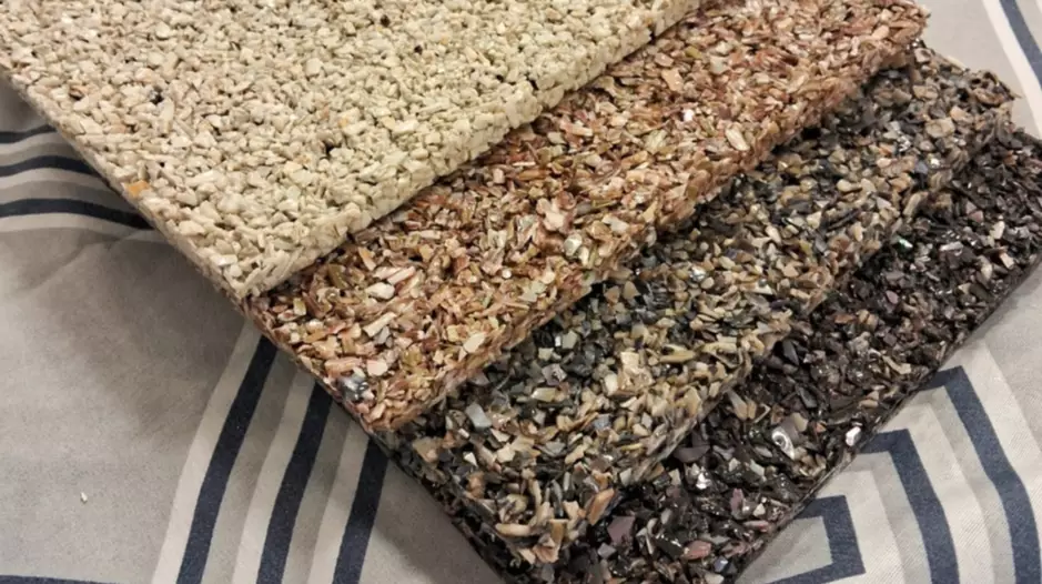 El desarrollo propone convertir las valvas de mariscos, que actualmente se descartan en el Centro Ambiental Patagónico, en placas de revestimiento. El proceso de producción genera pocos residuos y permite que las partículas no utilizadas se reintroduzcan como materia prima para otros usos, cerrando el ciclo productivo.