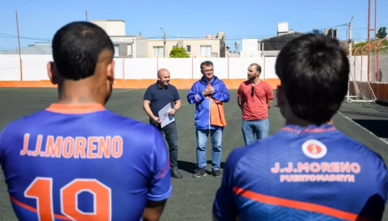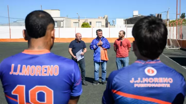 "En este marco, visitamos las instalaciones del Club Social y Deportivo J. J. Moreno, a quienes les entregamos un aporte para que puedan participar del Torneo Regional Amateur de fútbol", precisó Sastre.