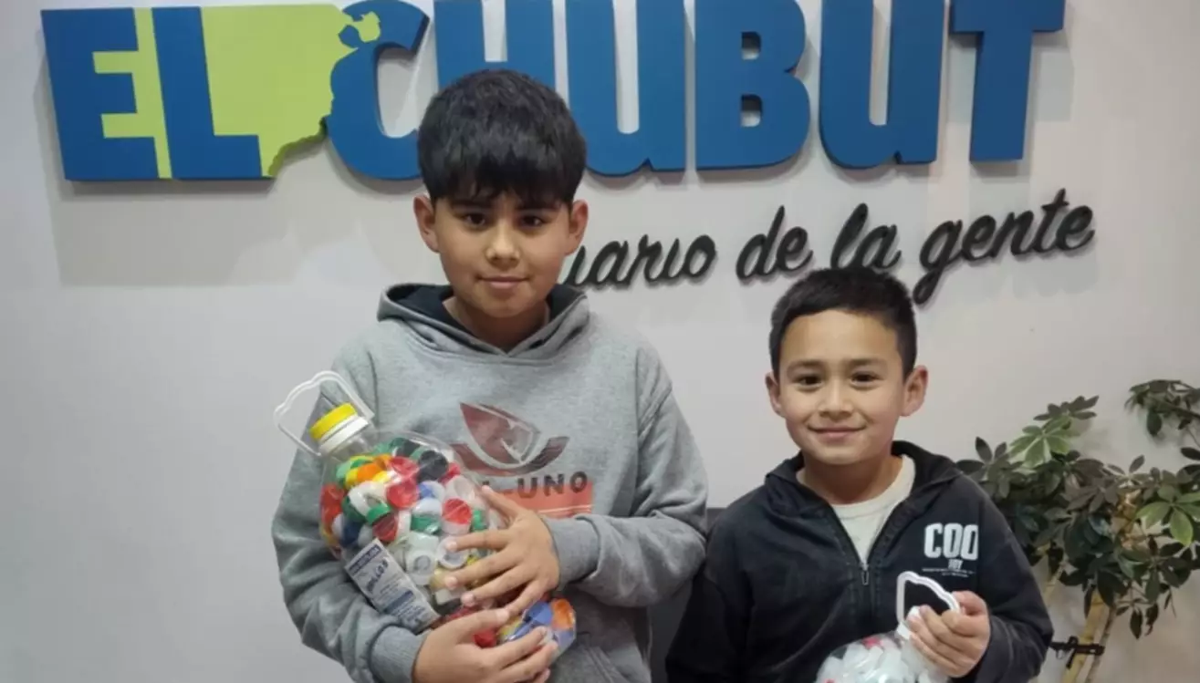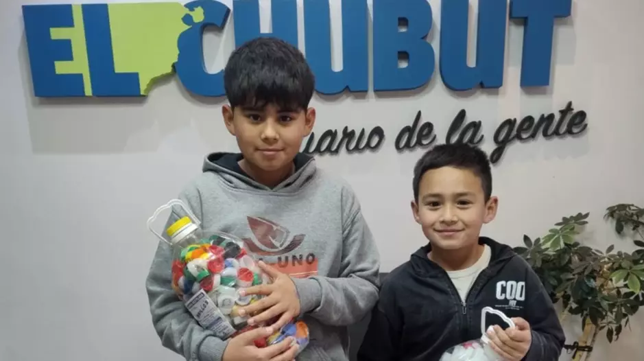 Ciro de 11 años y Ramiro de 8 años, vinieron a EL CHUBUT y dejaron sus tapitas de plástico que juntan entre toda la familia para colaborar con la Fundación Garrahan que atiende a niños de todo el país.
