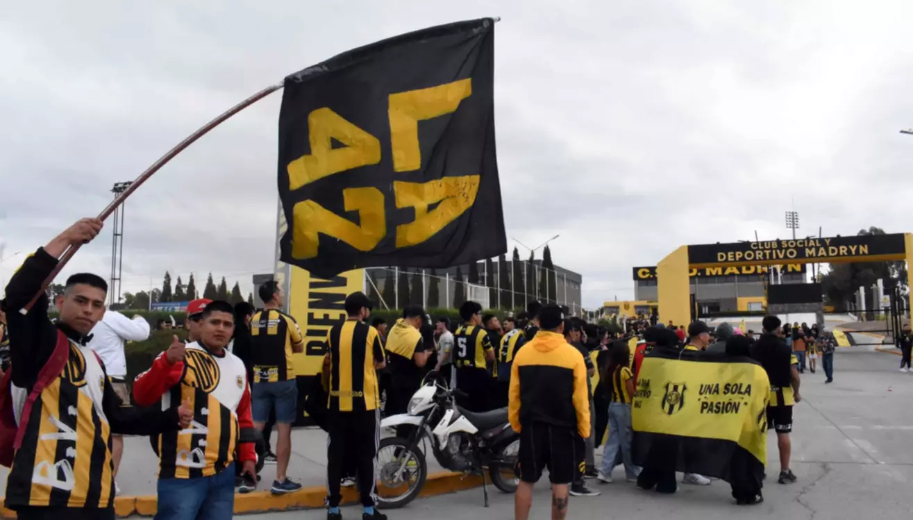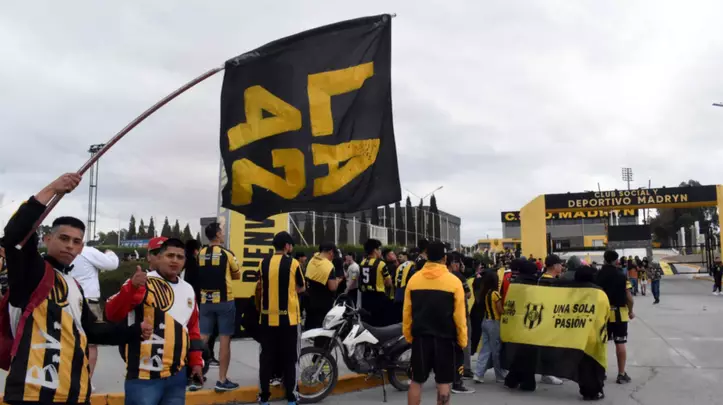 Los hinchas se congregaron fuera del predio del Club Social y Deportivo Madryn para alentar al equipo mientras esperaban la partida del colectivo hacia el aeropuerto.