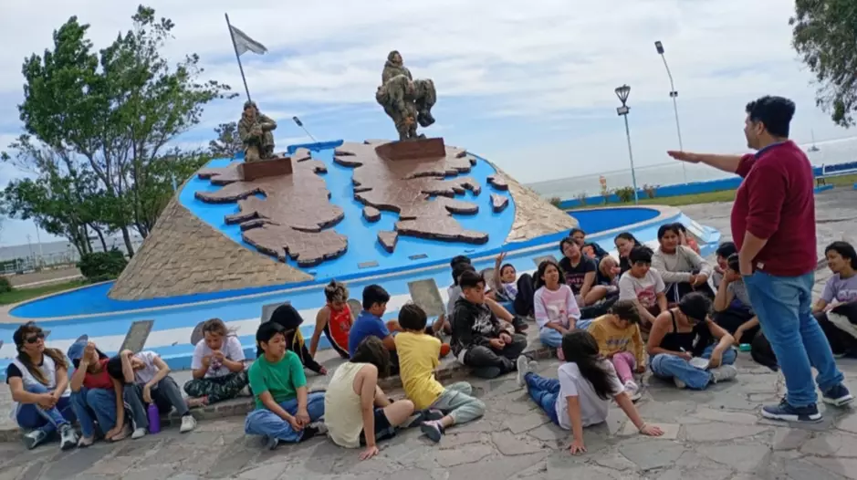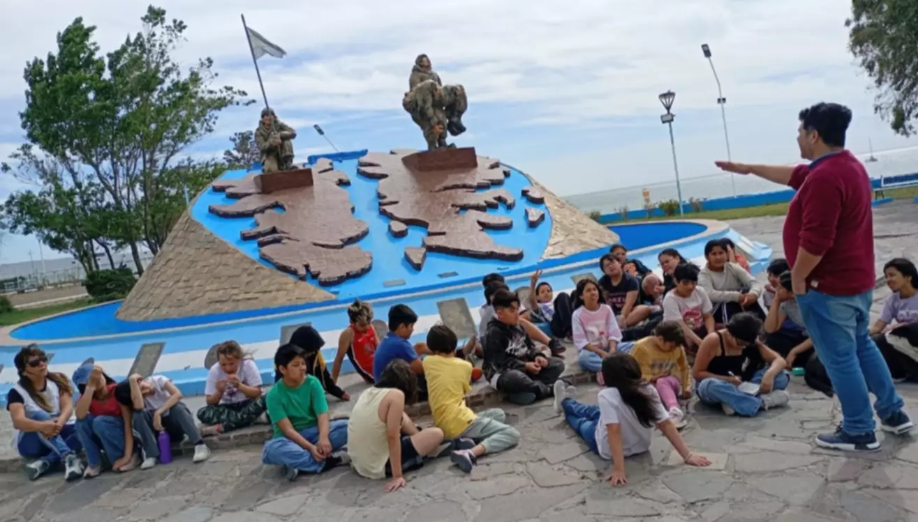 La Asociación Cultural Sanmartiniana brindó una charla educativa con estudiantes de 5to grado de la escuela 162 en el monumento a los veteranos y caídos de Malvinas.