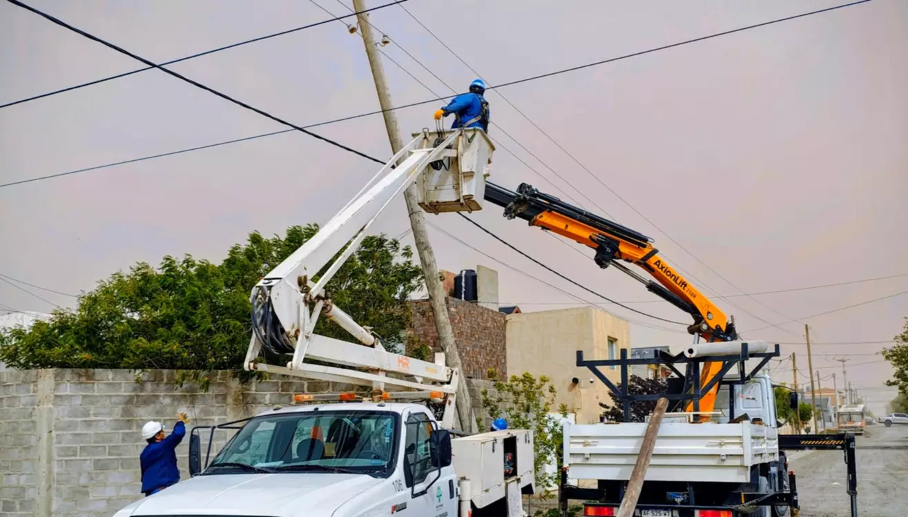 Las intensas ráfagas provocan, la rotura de postes y esto a su vez genera que se accionen los mecanismos de protección de los Distribuidores. Para afrontar las consecuencias del temporal, la Cooperativa Eléctrica de Madryn trabaja a contra reloj para reponer el servicio.