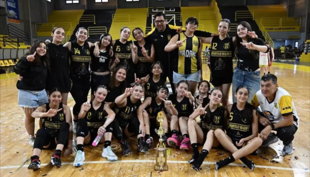 El U15 femenino de Deportivo Madryn se coronó campeón este domingo tras imponerse en el Final Four que se jugó en el gimnasio “Luján Barrientos” con la participación de los mejores 4 equipos de la fase regular. En el primer turno, por la semifinal, el conjunto aurinegro venció a Ferrocarril Patagónico por 71-45 y por la tarde, en el juego final superó a Racing, que venía de eliminar a Germinal, por 68 a 50.
