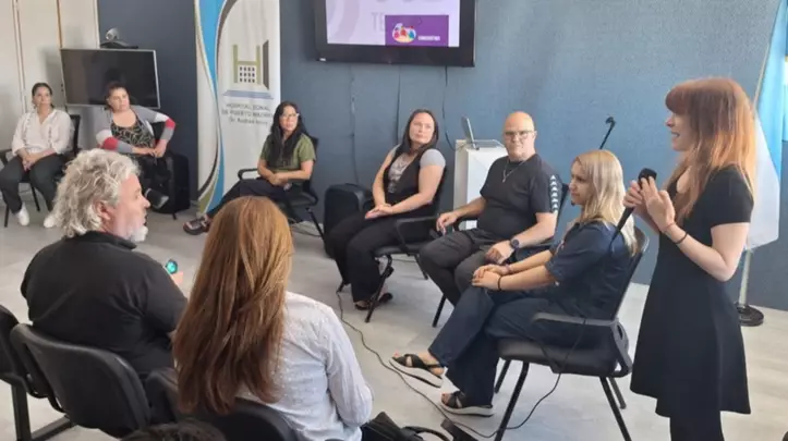 El encuentro contó con la presencia de directivos del Hospital Ísola, de la dirección provincial de Salud Digital de la Secretaría de Salud del Chubut y referentes de los hospitales rurales de Gastre, Telsen y Puerto Pirámides, coordinadores y equipo de diversos servicios, y los mentores de la oficina de Comunicación a distancia del Hospital Garrahan, Celeste Savignano y Antonio Luna.