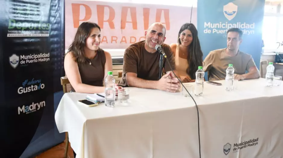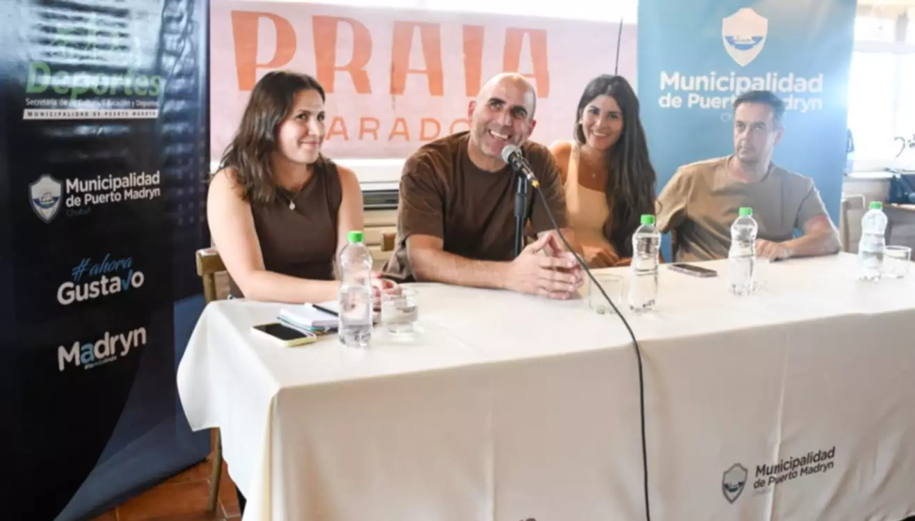 Del acto de lanzamiento participaron el secretario de Educación, Cultura y Deportes, Diego González; las organizadoras del evento, Antonella Vezzi y Floriana Pérez Barría; y en representación del parador Praia, anfitrión de la presentación, Ignacio Refsgaard.