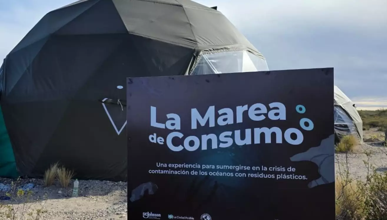 Bajo el nombre, «La Marea de Consumo», se trata de una experiencia inmersiva dentro de un domo geodésico, que revela el impacto de hábitos de consumo en el ecosistema más grande del planeta y las especies que lo habitan. La muestra es parte de Recupera & Transforma, programa impulsado por La Ciudad Posible con apoyo de SC Johnson