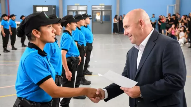 El intendente de Puerto Madryn, Gustavo Sastre, encabezó esta mañana el acto en el que se entregaron los diplomas correspondientes a 45 nuevos agentes de la Policía del Chubut, que estarán a disposición en la jurisdicción de nuestra ciudad.