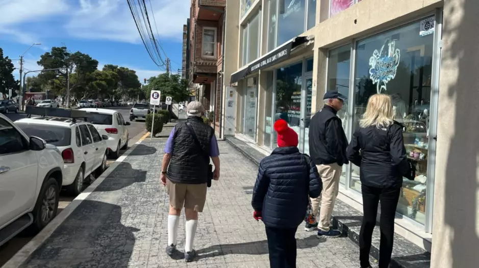 El movimiento de este domingo en la ciudad turística de Puerto Madryn es inusual a la de todo el año: la buena temperatura, una temporada de turismo todavía muy activa, y hasta un crucero de lujo amarrado a pocos metros. Señal para aprovechar. Pero nada logra torcer la idea de trabajar un domingo a la mañana. Salvo algunas excepciones, todos los comercios del corredor de la Avenida Roca estaban cerrados. Hasta los privilegiados puestos de artesanos estaban con sus tablones cerrados, con los curiosos caminando alrededor.