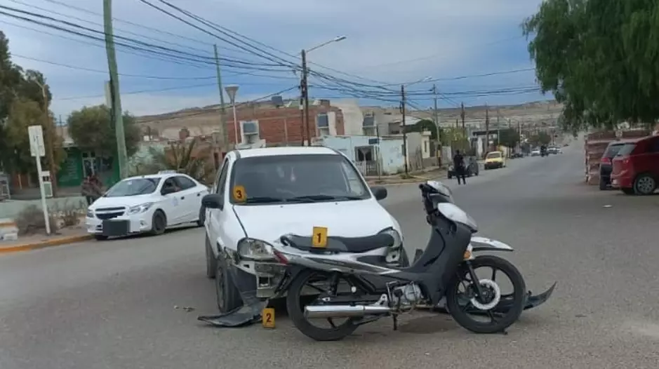 Al llegar al lugar, los efectivos observaron sobre la calle España, una moto con daños visibles, el cual fue movido por los conductores. Por otro lado, vieron un vehículo Chevrolet Corsa, con daños en su frente.