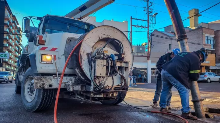 Personal de Saneamiento de Servicoop, llevó adelante arduas tareas de desobstrucción y limpieza sobre distintos puntos del colector cloacal, ubicado en la calle 28 de Julio.