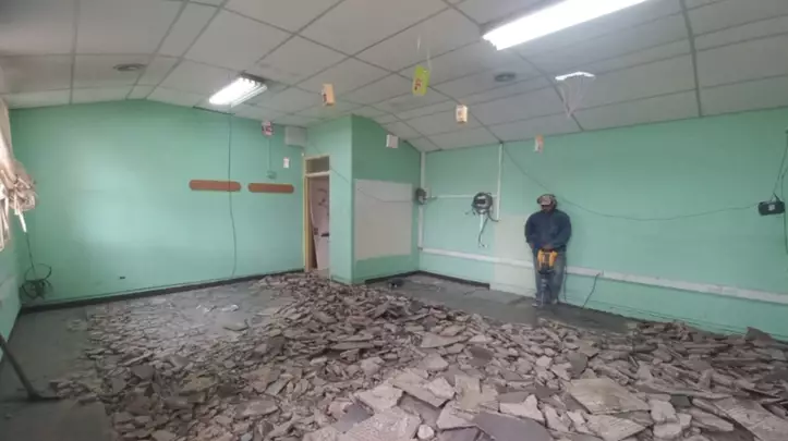 Actualmente, los trabajos comenzaron con la extracción del piso existente, con la finalidad de remodelar a nuevo el sector de cocina.