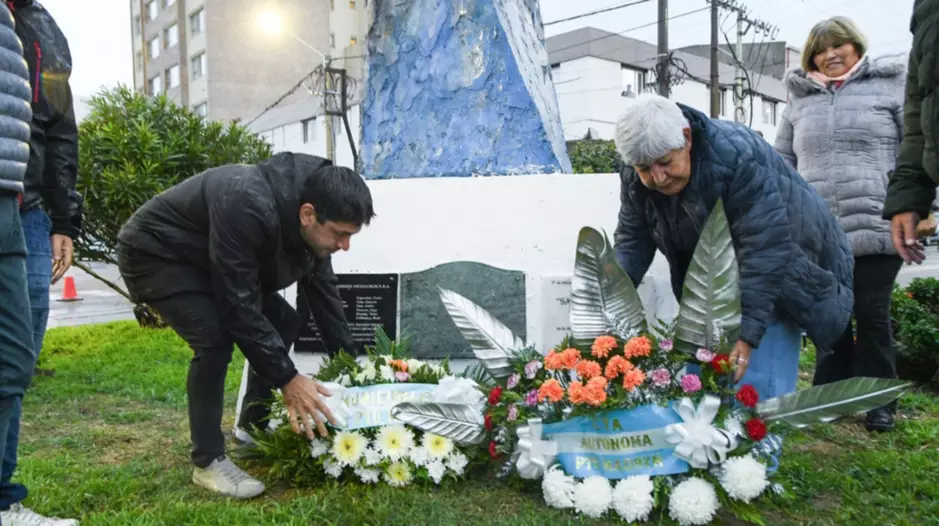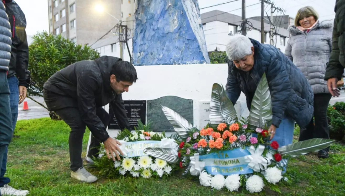 Con la presencia del Viceintendente de la ciudad y referentes de entidades gremiales, se colocaron ofrendas florales durante la ceremonia oficial