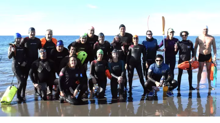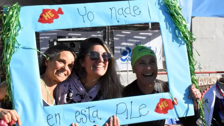 Hasta las 16 horas, sobre el frente de la institución, fueron muchas personas que se acercaron a pasar la tarde al sol y también hubo nadadores que llevaron su traje de neopreno para participar de la actividad acuática.