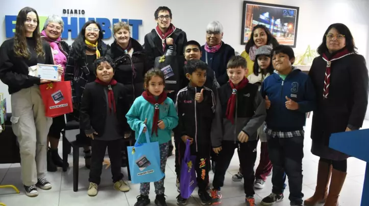 Un grupo de niños integrantes del Club Aventureros de la Iglesia Adventista del Séptimo Día, se acercó ayer a EL CHUBUT para saludar al equipo que integra la agencia Puerto Madryn, por el Día del Periodista y a dejar un hermoso presente por la labor de todos los días.