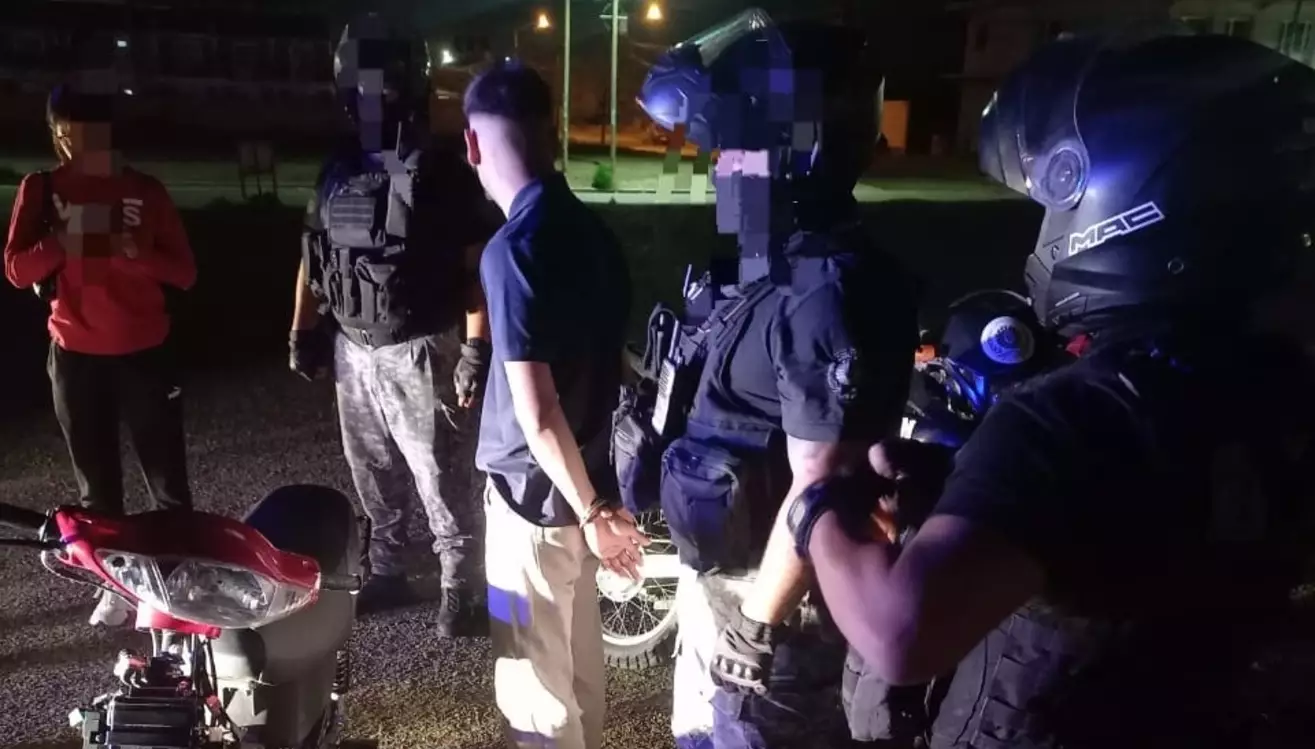En el procedimiento intervino personal de Tránsito Municipal, que labró el acta de infracción correspondiente y dispuso el secuestro del motovehículo. El fiscal de turno ordenó que el aprehendido registre ingreso judicial.