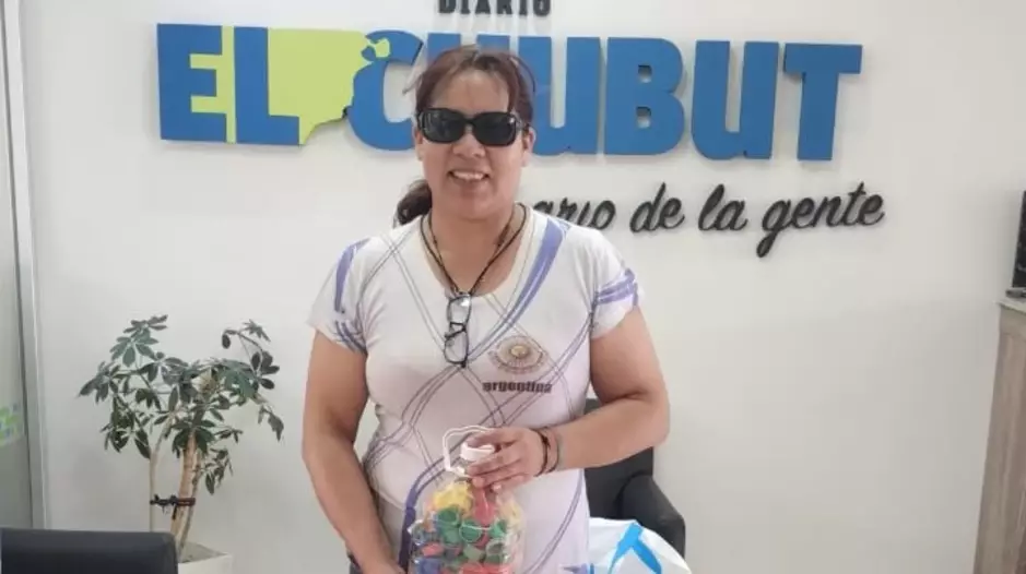 Nadia Quiroga se acercó a la agencia de Puerto Madryn de Diario EL CHUBUT para dejar tapitas. Hace varios años, este medio comenzó a recibir tapitas en sus sedes de Trelew y Madryn que luego se envían a Buenos Aires.
