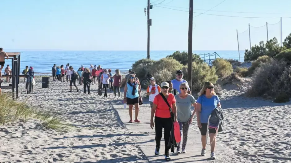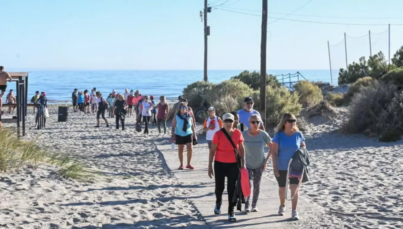 En el Punto de Deportes de Playa compartió un momento con hombres y mujeres, que se unieron al taller para realizar todo tipo de actividades físicas y recreativas en la costa de Puerto Madryn.