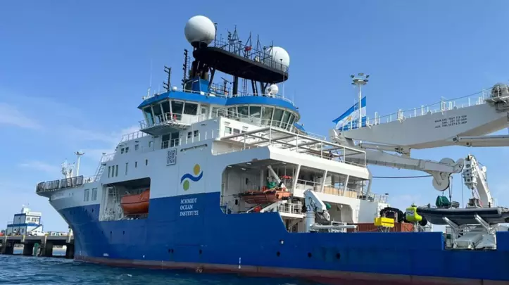 El buque de investigación Falkor Too operado por el Schmidt Ocean Institute que está amarrado en el Piedra Buena, partirá este lunes rumbo a Brasil para continuar con las expediciones.