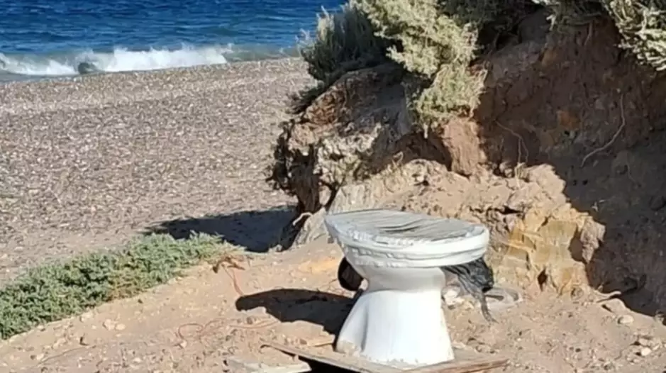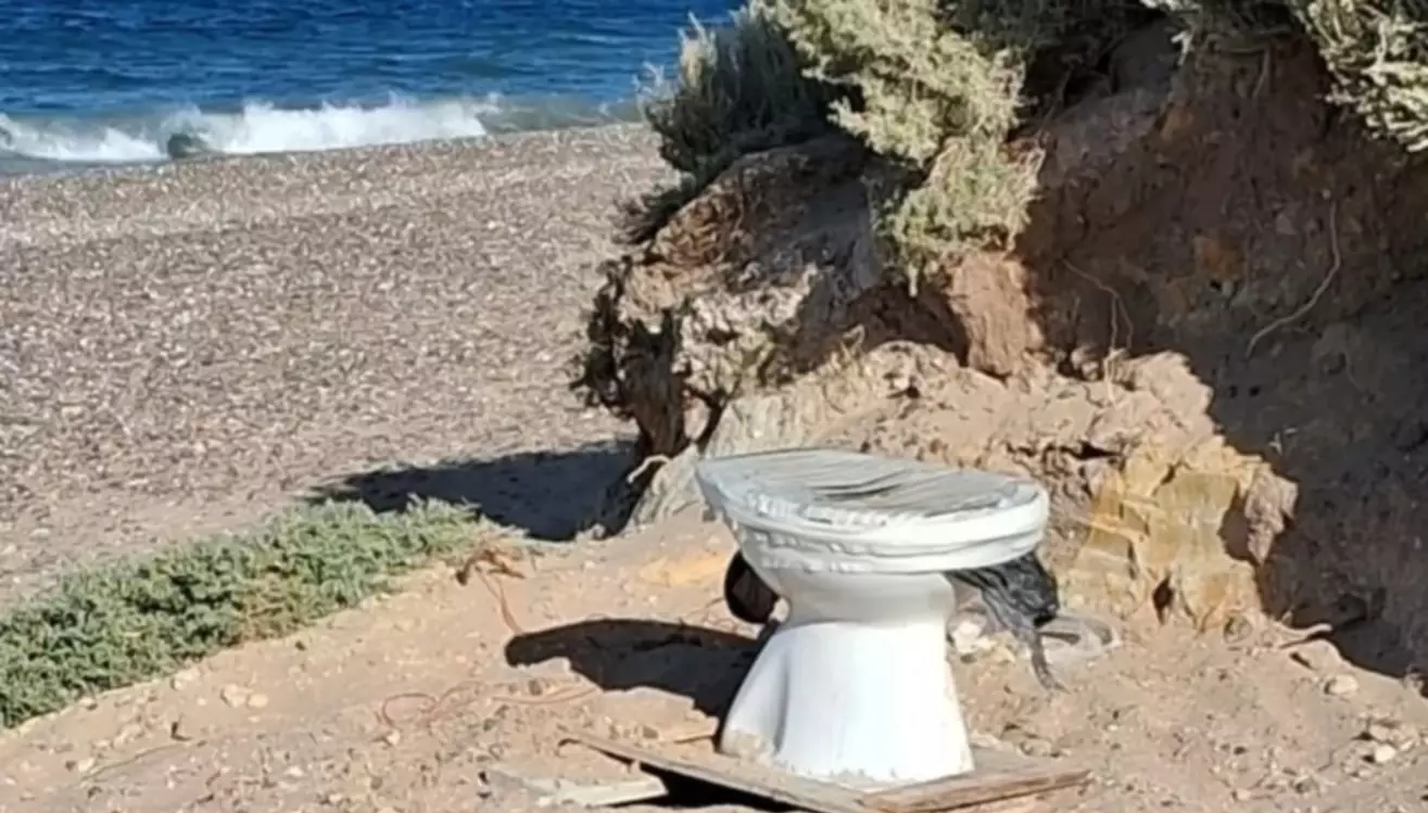 Un vecino compartió una imagen tomada en Playa Kaiser, en la zona sur de la ciudad, luego de encontrarse a la intemperie un inodoro instalado con un pozo ciego, a metros del mar.