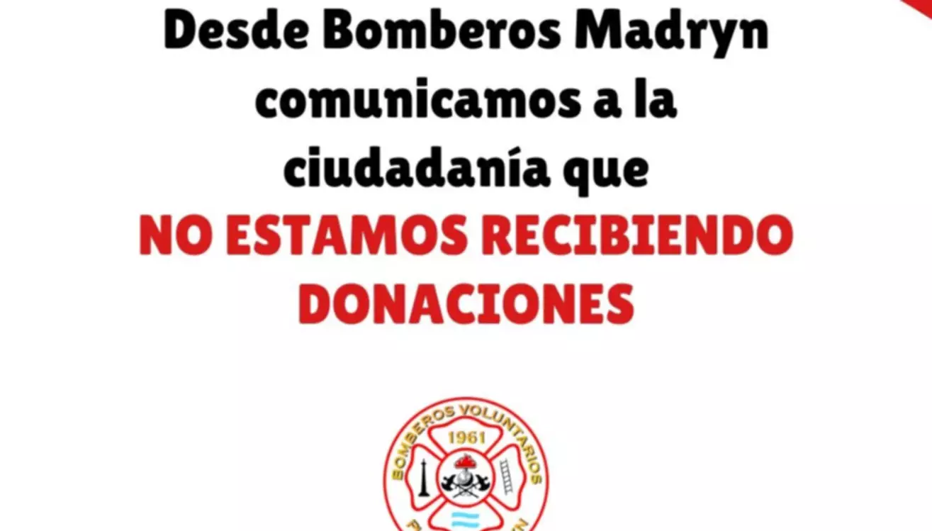 Desde la Asociación Bomberos Voluntarios de Puerto Madryn hacemos saber a la comunidad que NO ESTAMOS RECIBIENDO DONACIONES para El Hoyo u otras localidades de la comarca, ni tampoco para nuestros camaradas de aquella región.