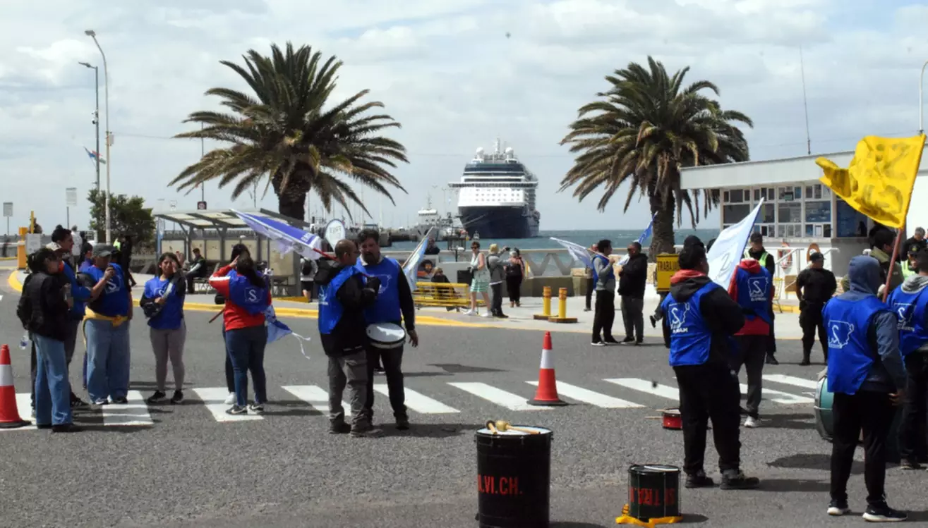 Afiliados de Sitravich se manifestaron en el muelle frente a los cruceristas