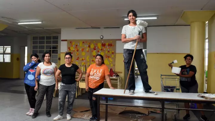 “Estamos pintando con tres mamás, una profe y dos ingresantes que vinieron a ayudar, una de ellas mi hija. La pintura de las aulas las conseguimos gracias a las familias y la pintura de la galería la donó el Rotary Club cinco latas de pintura, a partir de gestiones del año pasado con la directora Cecilia Pérez”, expresó.