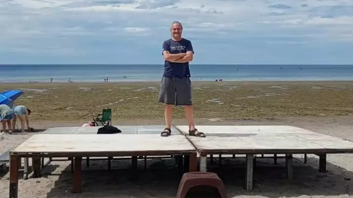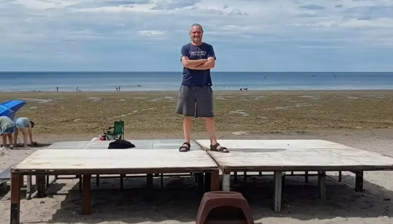 Con un escenario sobre la arena, Darío brindó una charla filosófica a la orilla del mar. El evento contó con un gran nivel de participación, incluso muchas personas llevaron sus reposeras para disfrutar del encuentro al aire libre.