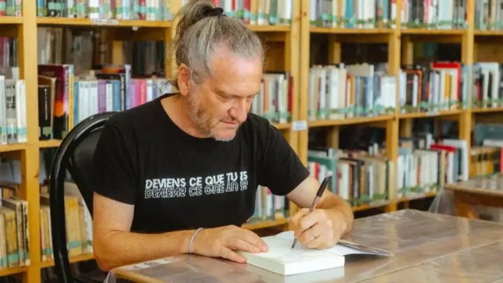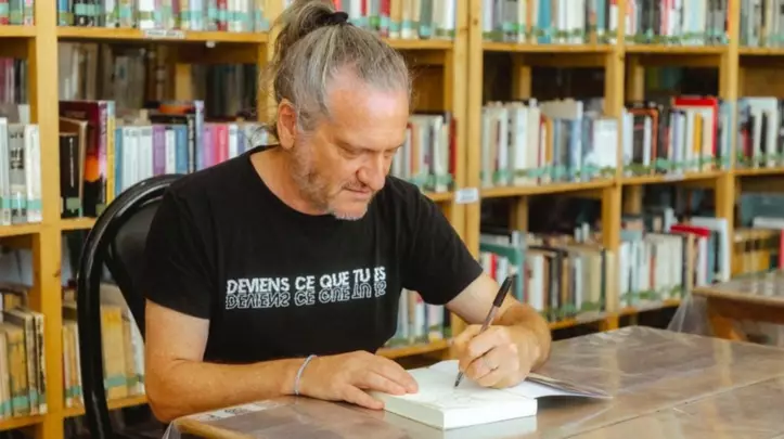 Darío Z brindó una charla de filosofía a la orilla del mar y visitó la Biblioteca Municipal