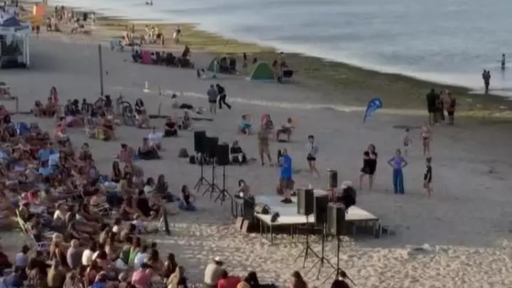 Con un escenario sobre la arena, Darío brindó una charla filosófica a la orilla del mar. El evento contó con un gran nivel de participación, incluso muchas personas llevaron sus reposeras para disfrutar del encuentro al aire libre.