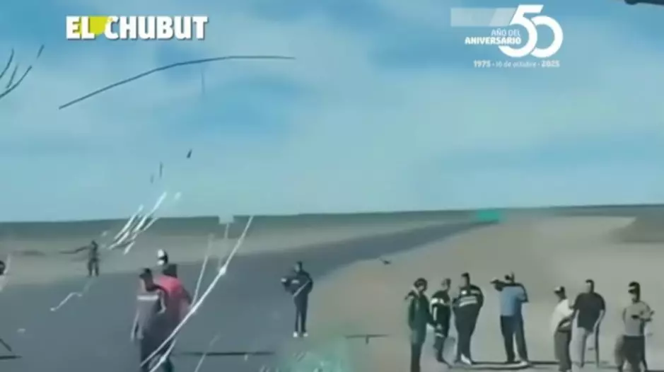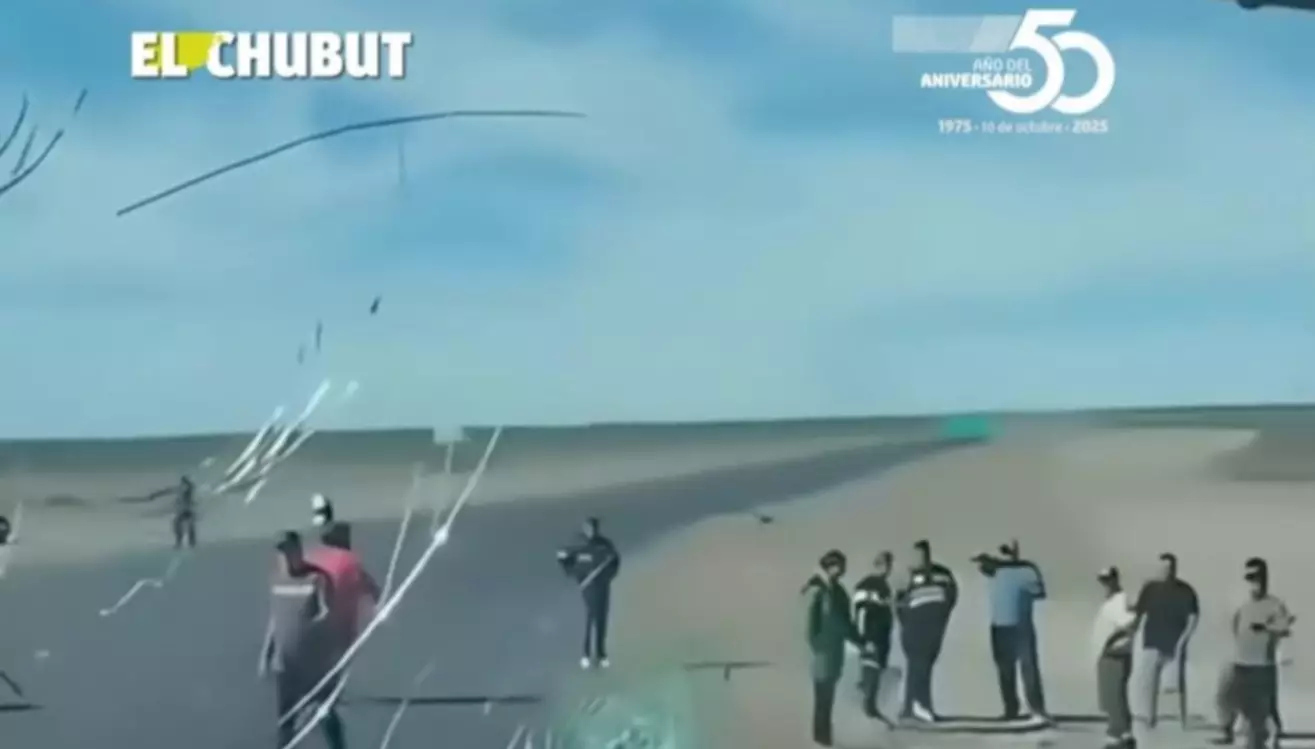 En las imágenes si bien no se ve el momento del ataque, uno de los trabajadores mostró los daños desde el interior del camión, tanto en el parabrisas como en el espejo retrovisor.