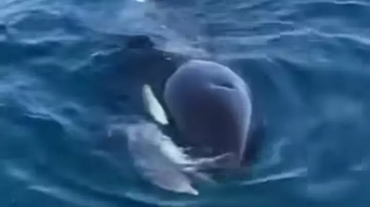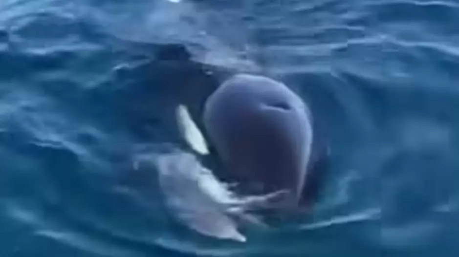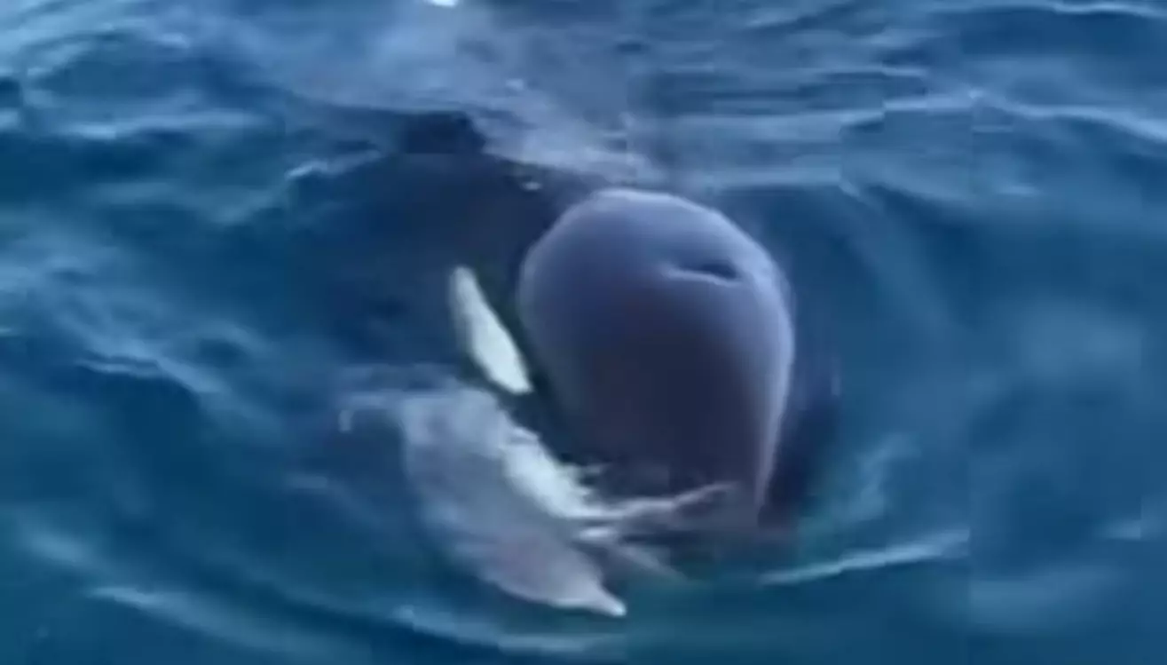 El pasado domingo, la orca Mica y sus crías Aiken y Piqui fueron vistas cazando delfines en el Golfo Nuevo frente a Puerto Madryn. Según informó Patagonia Valdés Orca Research, la presa fue una cría de delfín común (delphinus delphis). Con el delfín en la boca, se acercaron a una embarcación de paseo náutico, desde el cual Aylen González logró registrar el momento.