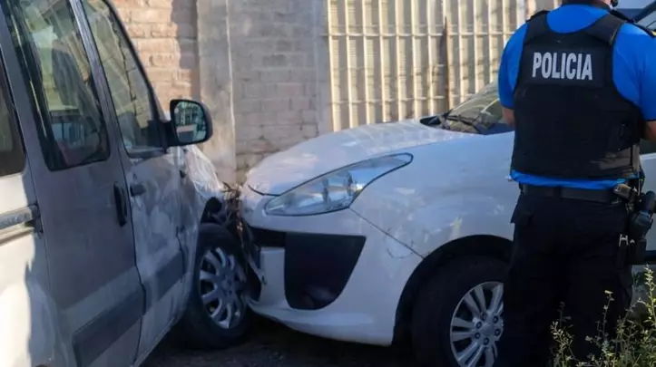 Al arribar constataron la presencia de un vehículo marca Fiat Dobló de color blanco que subió a la vereda e impactó con el lateral de una Renault Kangoo que se encontraba estacionada, la cual presentó daños en el guardabarros.