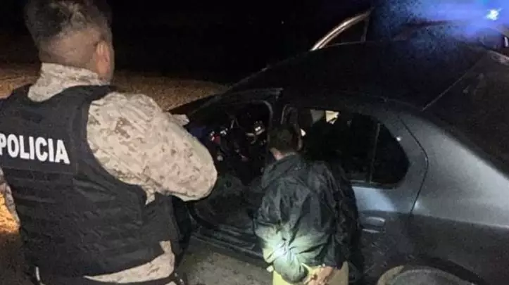 Finalmente, el automóvil fue interceptado a pocos metros de ingresar a Rawson. Al detenerse, los dos ocupantes descendieron y emprendieron la huida a pie hacia una zona rural cercana.