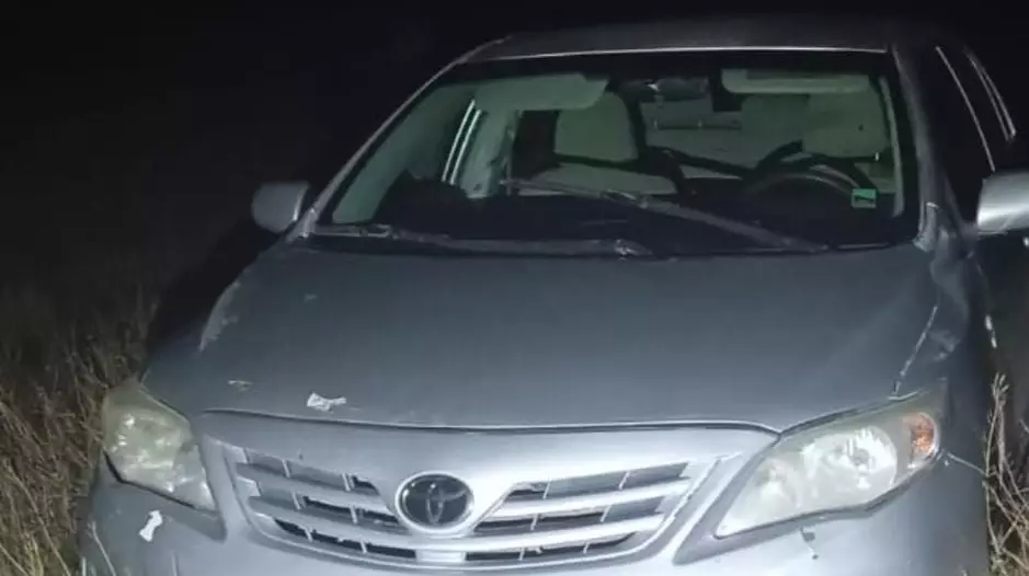 El vehículo, un Toyota Corolla gris, fue hallado abandonado kilómetros a la altura del kilómetro 1303 de la Ruta 3, sin ocupantes y con las llaves colocadas. Ante esta situación, se desplegó un amplio rastrillaje en campos y sectores aledaños.