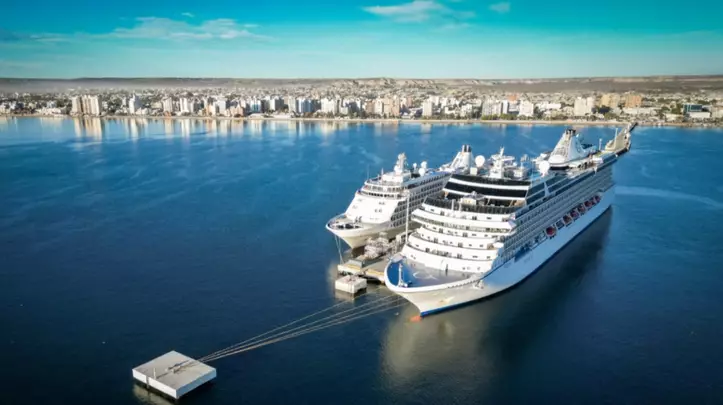 Esta es la segunda visita del Marina a las aguas madrynenses y en esta oportunidad llegó tras su paso por las Islas Malvinas. Hoy compartirá el Muelle Comandante Luis Piedra Buena con el crucero de menor tamaño, Silver Whisper que pernoctó en la ciudad, también debido a condiciones climáticas.