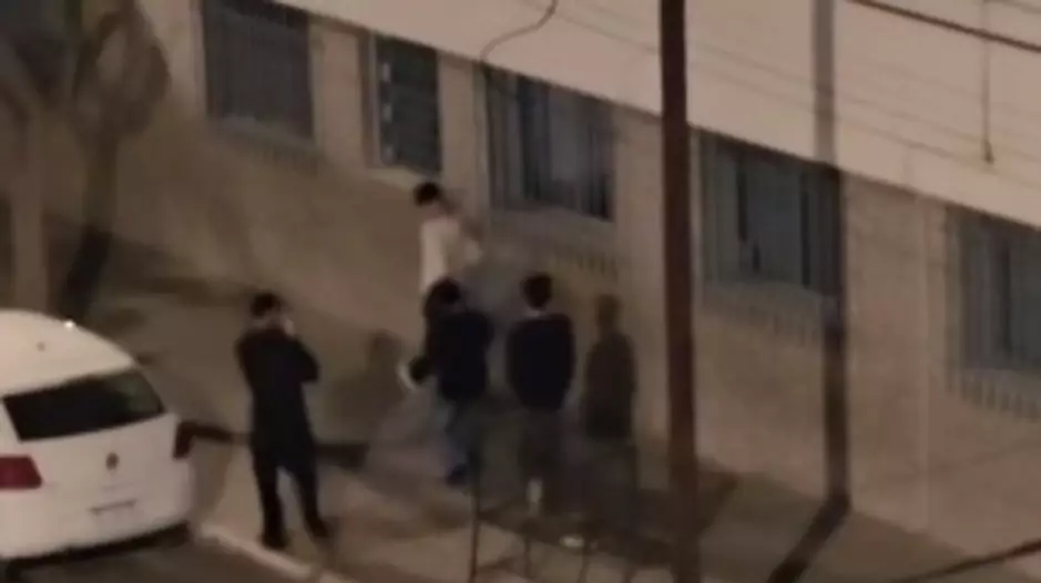 En las imágenes, se puede observar a un grupo de cuatro jóvenes. Uno de ellos lleva en sus manos el canasto roto, que debía estar fijo en la vereda, mientras otros tres filmaron la situación, alejándose del lugar.
