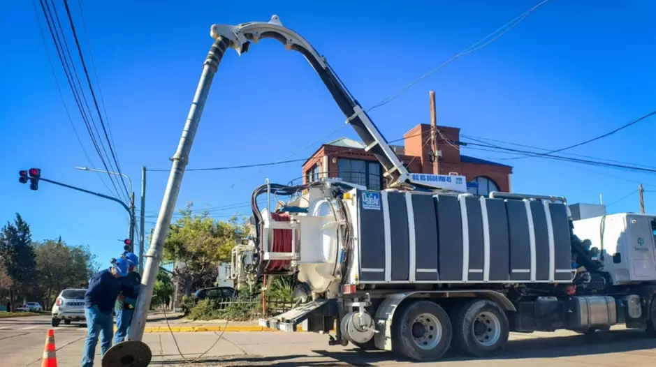 Durante la última semana personal de Saneamiento de Servicoop llevó a cabo intensas tareas de mantenimiento sobre el colector ubicado en la arteria Lewis Jones, el cual resultó afectado por el ingreso de piedras y arena.