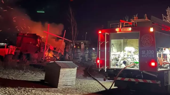 Bomberos Voluntarios acudieron a un incendio en la zona de Las Bardas, que consumió una vivienda. El fuego inició cuando la familia quemaba “yuyos” cerca de la casa, lo que ocasionó que una chispa se extendiera a la vivienda.