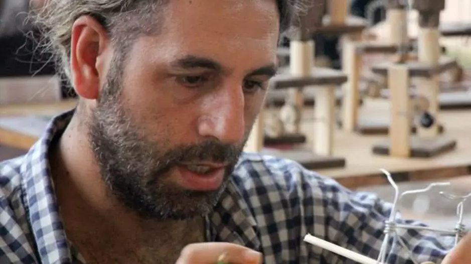El artesano que trabaja fundamentalmente con madera generando juguetes articulados a la par de ser titiritero y creador de marionetas, desde hace más de 20 años, llega a la ciudad en el marco del programa de extensión cultural junto a organizaciones no estatales, en este caso aunando esfuerzos entre el Mercado Cultural, dependiente de la Subsecretaría de Cultura y Colmena, artes y oficios.