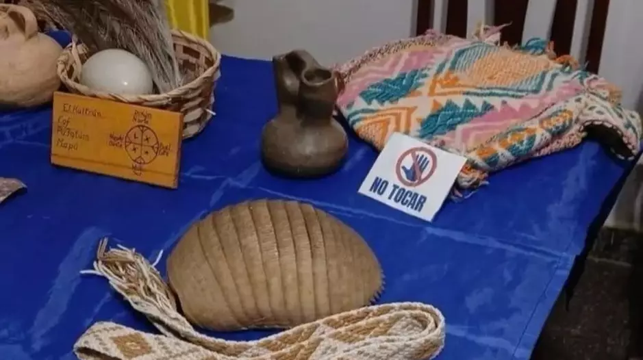 En la oportunidad se podrán apreciar Vasijas de cerámicas; Tejidos chicos y medianos; Libros de medicina ancestral; las banderas Mapuche Tehuelche y otra con el logo de la Comunidad “Pu Fotum Mapú”; Instrumentos como Ñorkin, pifilka, cultrun, entre otros objetos.