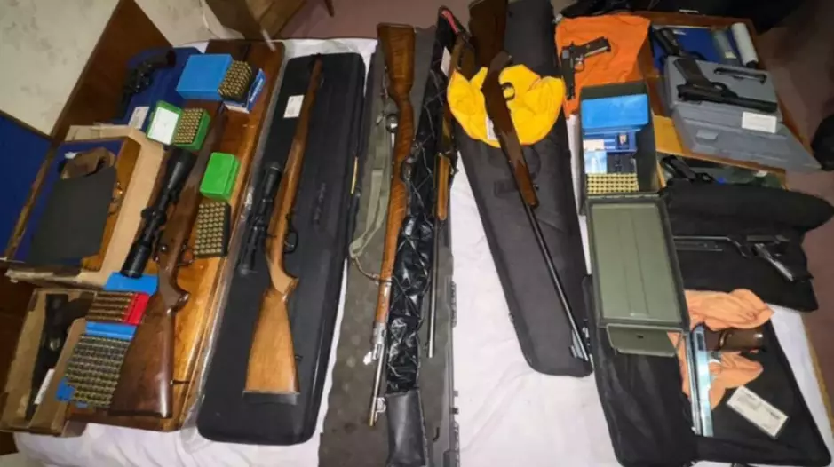 Al ingresar a la vivienda, el personal policial se encontró con una gran cantidad de armas de fuego. En total, se secuestraron más de 26 armas largas y cortas, entre ellas un fusil FAL y una ametralladora, además de más de 1600 municiones de distintos calibres.