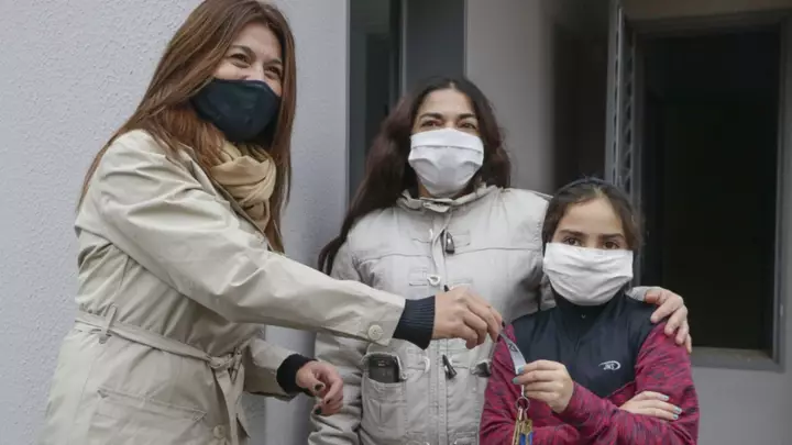 El Instituto Provincial de la Vivienda y Desarrollo Urbano (IPVyDU), entregó ayer el complejo de 16 viviendas sorteadas el pasado 24 de junio en Rawson. El acto, realizado bajo todas las normas sanitarias establecidas, fue encabezado por la gerente general del IPV, Ivana Papaianni, y el director Social del organismo, Jorge Etchepareborda, quienes hicieron entrega de las llaves a 16 familias para que puedan tomar posesión de sus nuevas viviendas.